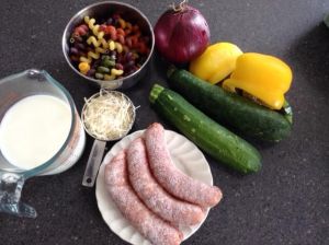 Grilled Vegetable & Sausage Pasta … Served with a French Syrah